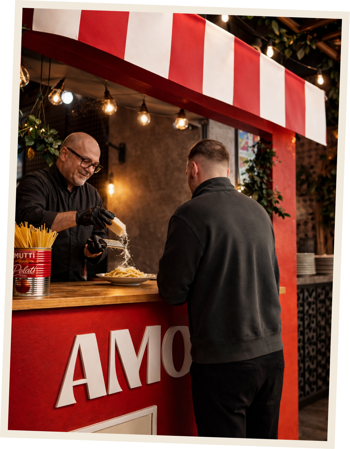 Des plats frais et authentiques, préparés à la minute par notre brigade made in Italy. Que ce soit pour un lunch d’affaires ou un dîner entre amis, Amore vous régale chaque jour.